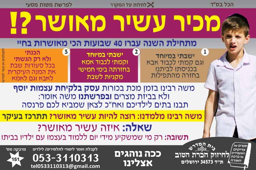 בפרשתנו למדנו שמשה רבנו, בזמן מכת בכורות, לא עסק בביזת מצרים אלא בלקחת את עצמות יוסף. הוא לימד אותנו סדר עדיפויות: קודם בונים בתים לילדים ("בנו בתים לילדיכם") ורק אחר כך דואגים לצאן ולפרנסה. התשובה לשאלה מי הוא עשיר מאושר היא אחת: רק מי שמשקיע מדי יום בללמוד בעצמו עם ילדיו בביתו.