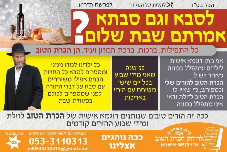 הקשר הבין-דורי: אבא מתקשר להוריו בכל ערב שבת, והילדים לומדים מכך שכיבוד הורים לא מסתיים כשגדלים. מסורת של כבוד.